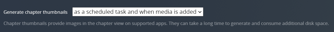 Chapter thumbnails provide images in the chapter view on supported apps. They can take a little time to generate and consume very minor additional disk space.